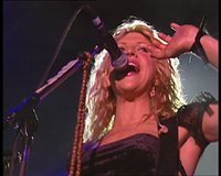 Courtney: Well I dunno if I can deal with it … Sean Penn just wrote an excellent letter to Fox, about not using the private jet to fly to a premiere. It'll be on a national syndicated wire, I just read it this morning. It made me laugh harder than anything I've read in a long time. Sean Penn, (does her favourite chest-thumping 'props' gesture) soul mate … so we're gonna play, we're really happy … we're gonna play a Hoodoo Gurus song tonight I think.